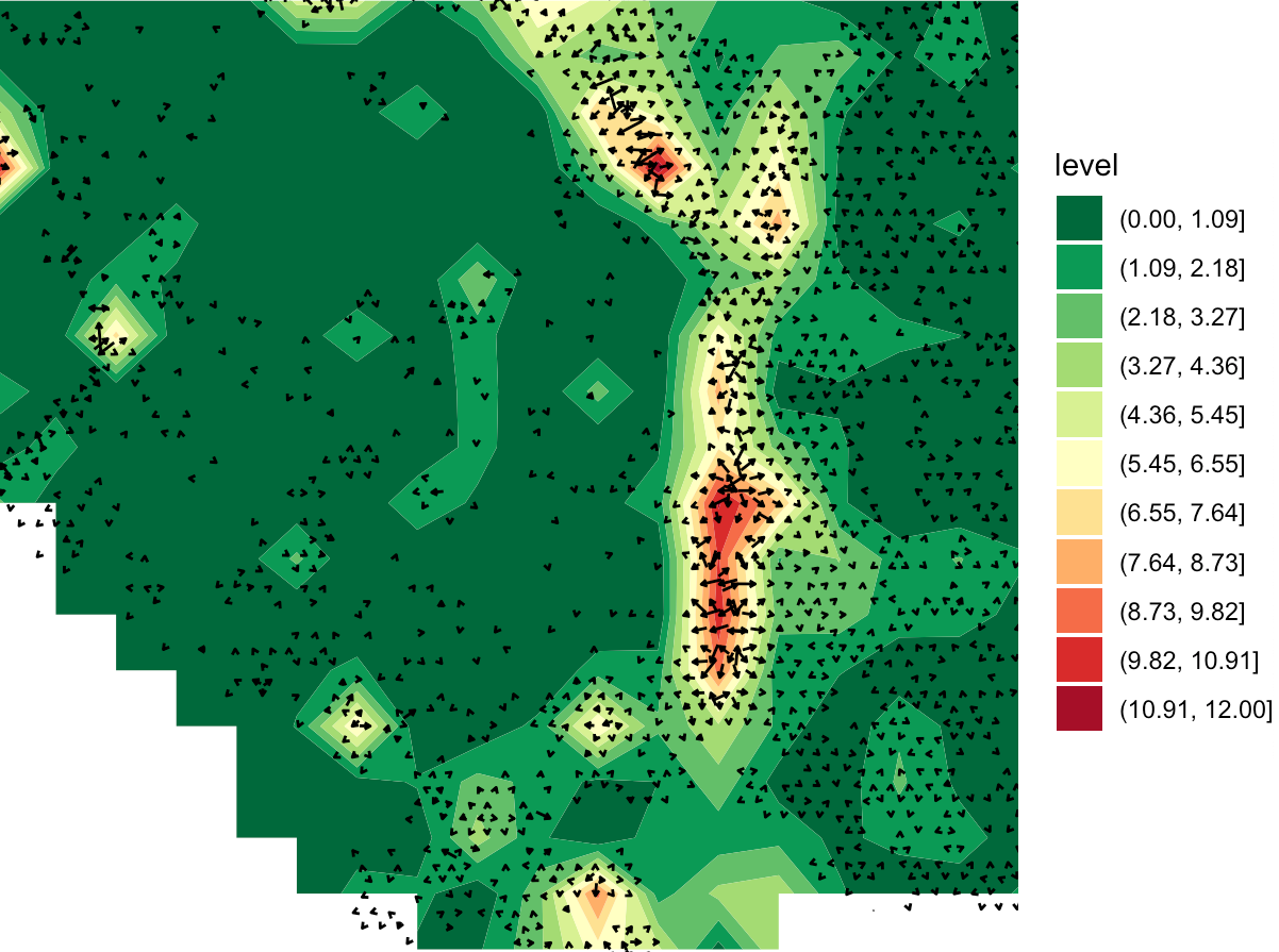 SecAct.signaling.velocity.spotST(SpaCET_obj, gene = "SPARC",contourMap = TRUE)