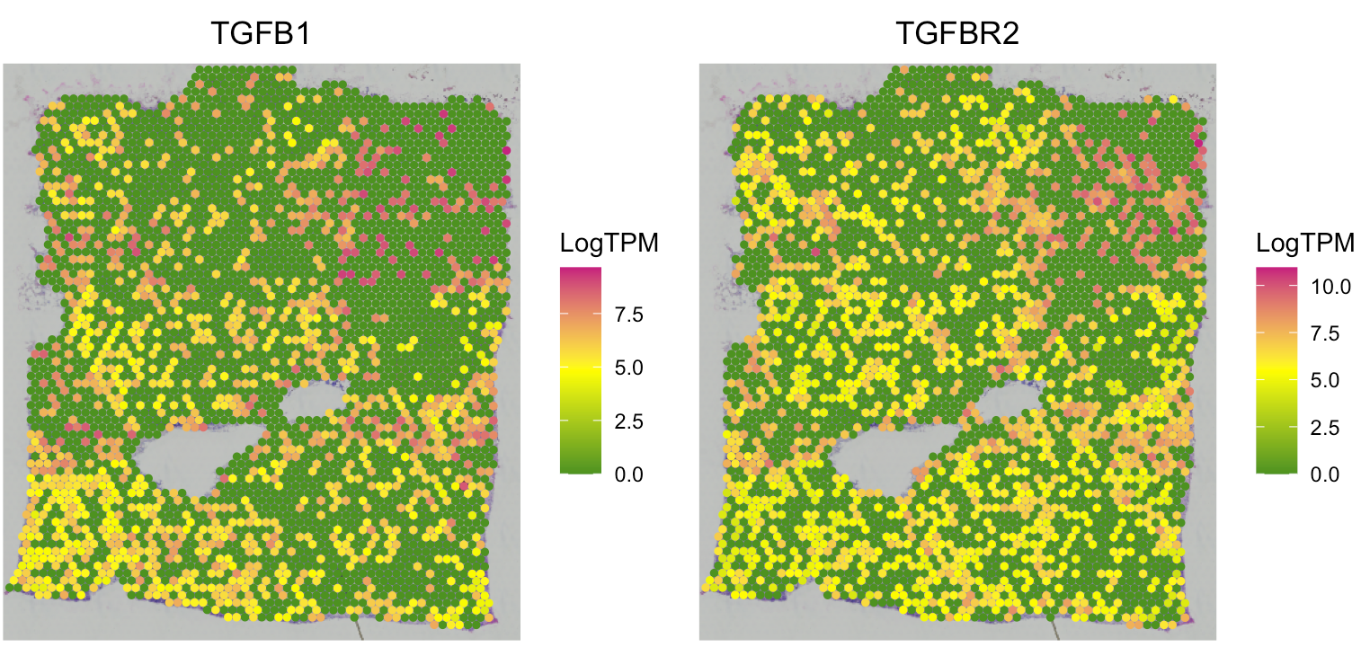 spatialFeatures = c("TGFB1","TGFBR2"),